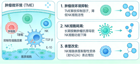 一是肿瘤细胞的免疫逃逸。肿瘤细胞会通过伪装自身,迷惑NK细胞,使其无法及时识别异常细胞,从而成功逃避杀伤;