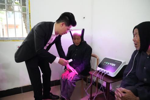 随后,全衡态员工代表带来《感恩的心》手语舞表演,整齐划一的动作、真挚饱满的情感,让在场人员深受触动,不少长辈也跟着轻轻哼唱,温馨的氛围感染了每一个人。表演结束后,爱心服务正式开启。全衡态员工与志愿者们分工协作,有的耐心为长辈们剪指甲、按摩肩颈,用轻柔的动作缓解长辈的疲惫。有的则协助公司领导在敬老院保健室安装全衡态红蓝光治疗仪,领导们一边安装一边细致讲解仪器使用方式,长辈们围坐一旁认真聆听,还亲身体验了仪器的便捷与舒适,纷纷点头称赞。义剪志愿者们更是拿出专业工具,根据长辈们的需求精心修剪发型。其中,莫董也参与在内,细心为长辈服务,让长辈们以清爽的面貌迎接节日。